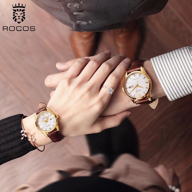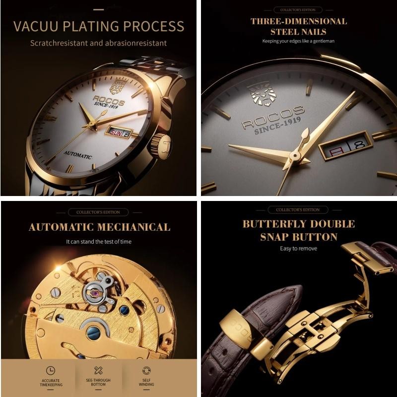 ROCOS Luxury Fully Automatic Mechanical Watch | High-End Stylish Design, Waterproof & Durable, Men's Minimalist Elegance, Showcasing Exceptional Taste:_White face with brown belt
