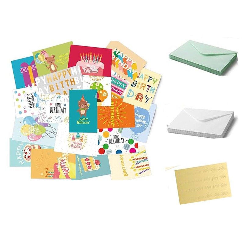 Roczential 24 Unique Birthday Cards with Envelopes & Stickers | 4x6 Inches Blank Happy Birthday Cards Assortment in Bulk for Family,Men, Women and Kids