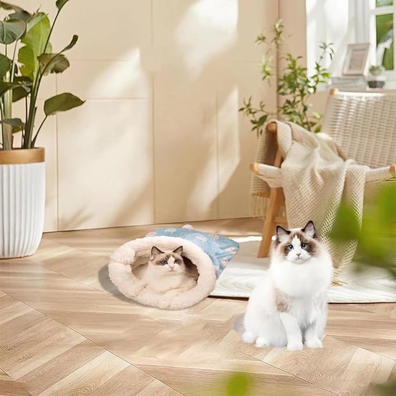 - 【 High-Quality Material】 Crafted from plush material and featuring premium wool and PP cotton filling, this cat sleeping bag creates a soft, comfortable, and safe resting environment for pets, ensuring they can relax in style and luxury.