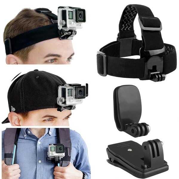 Roczential Head Backpack Mount Bundle Compatible with GoPro Hero 8 7 6 5 Black Session Hero 4 Black Silver Hero+ LCD 3+ 3 DJI Osmo Action Head Strap/Hat Quick Clip/Backpack Clip Mount