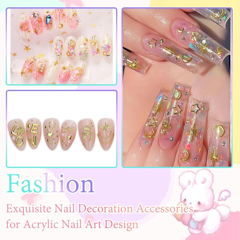 - Nail Studs Charms:These Gold Charms for Nails Are Adopt Various Shape Including LOVE Letter, Flower,Heart,Bow nail charms.Each Style Is Beautifully Design And Has Enough Quantity. You Can Easily Mix Them With Nail Pearls Use To Add Glamor To Your Nails Decor.Nail Studs Are Made Of Soft Metal,Tough And Durable Those Who Like Diy Nail Art.