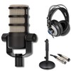 Rode PodMic Dynamic Podcast Microphone with On-Stage DS7200B Desktop Mic Stand, StreamEye Cans50 Podcast Headphones, XLR Cable and StreamEye Polishing Cloth