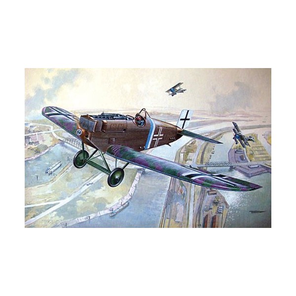 Hugo Junker's revolutionary all-metal World War I fighter. Kit features delicate corrugated surface texture, detailed engine, machineguns and cockpit. Decals for 2 aircraft: D.I serial unknown, Belgium, late 1918 and D.I 5185/18, Western Front, autumn 1918.