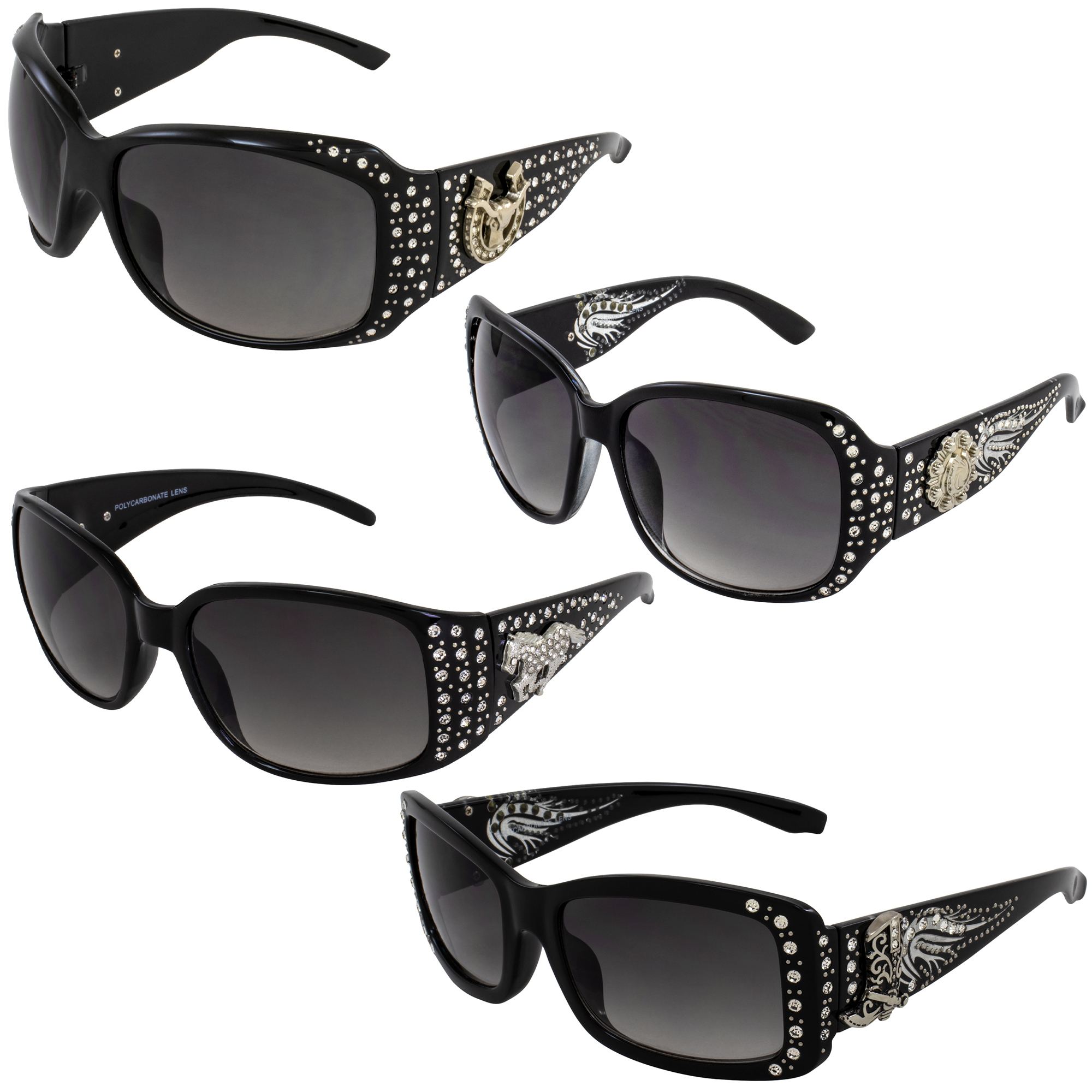 Rodeo Queen 4 Pairs of Cowgirl Studded Sunglasses for Women Black Frame w/