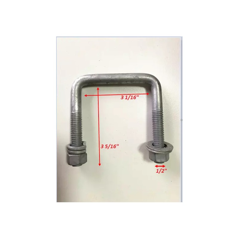 - (1) 1/2”x 3 1/16”x 3 5/16” Squared U-Bolt
