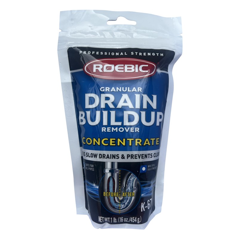 Roebic K-67 Drain and Trap Cleaner is a powerful non-corrosive and natural drain cleaning product that works through the power of bacterial action. Organic debris can build up in household drains and traps,which may lead to slow draining kitchen sinks, bathroom sinks and tubs. Keep your drains and traps running freely with a monthly application of K-67. K-67 will not harm natural bacteria in your septic system and will not damage plumbing, pipes, toilets or burn skin. For over 50 years Roebic has developed high quality products engineered for optimum performance targeting specific problems and troublesome areas within the septic system. Trust Roebic, The Septic Professionals, for all your septic and drain care needs.