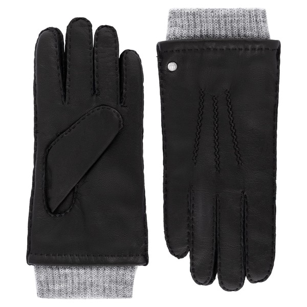 Roeckl Men's Metz Leather Gloves, Black/Grey, 9, Black / Grey