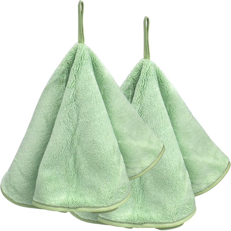 Roellgs 2-Piece Hand Towels Set with Loops, Fast Drying Hand Towels for Bathroom, Round Microfibre Hand Towel with Lanyard Design (green)