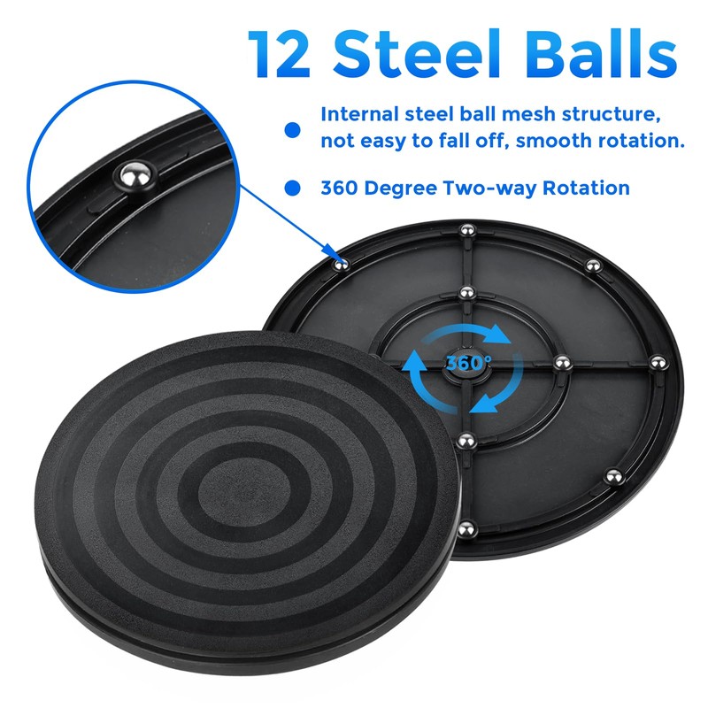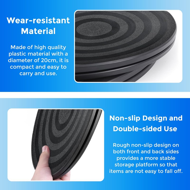 • HIGH QUALITY TURNTABLE Our 360 degree rotating table is made of high quality PP plastic, sturdy and durable, not easy to damage, not easy to break, not easy to deform, not easy to fade. Equipped with steel ball bearings, rust-proof, smooth surface, low rotation resistance.