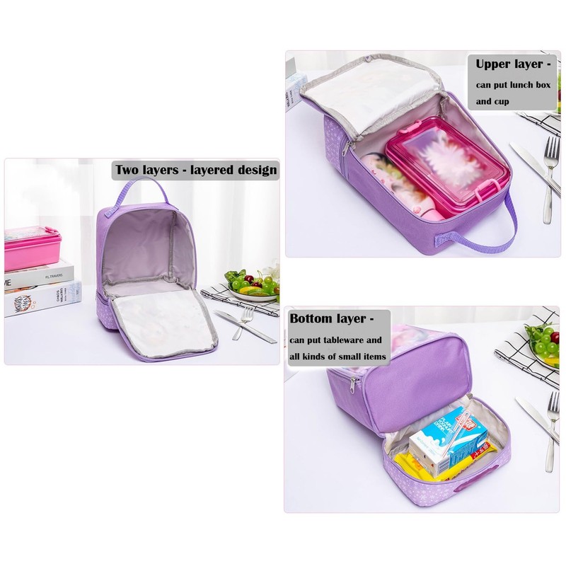 • ⭐️Layered Design: Zipper closure. Two layers design, Upper layer can put lunch box or drinks. Bottom layer can put tableware and all kinds of small items.