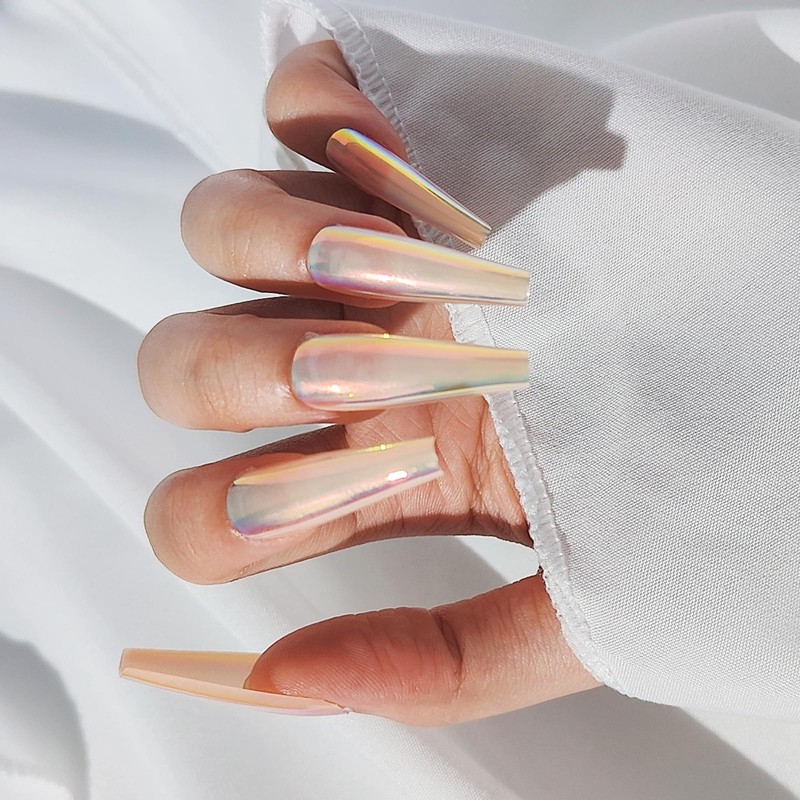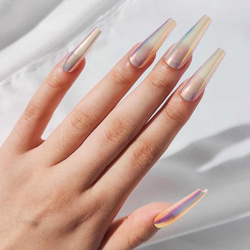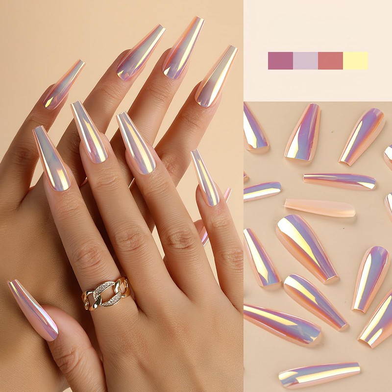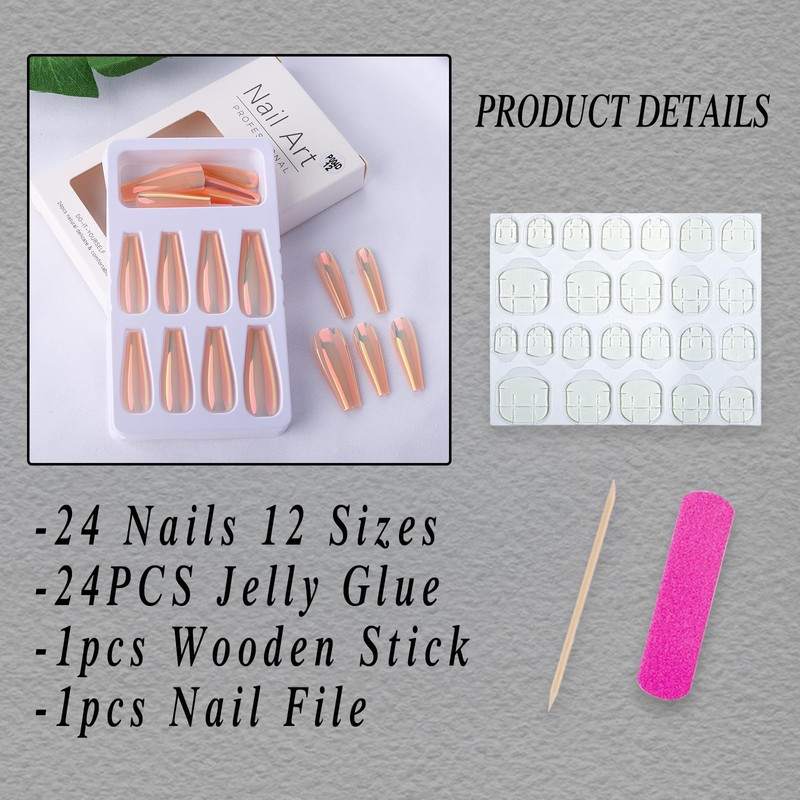 • 【Package Included】24pcs chrome mirror metallic false nails long ballerina, jelly glue, a wooden stick, alcohol pack. (Jelly glue is not as durable as liquid glue, but it makes the false nails reusable. Please use suitable glue according to different scenes.)