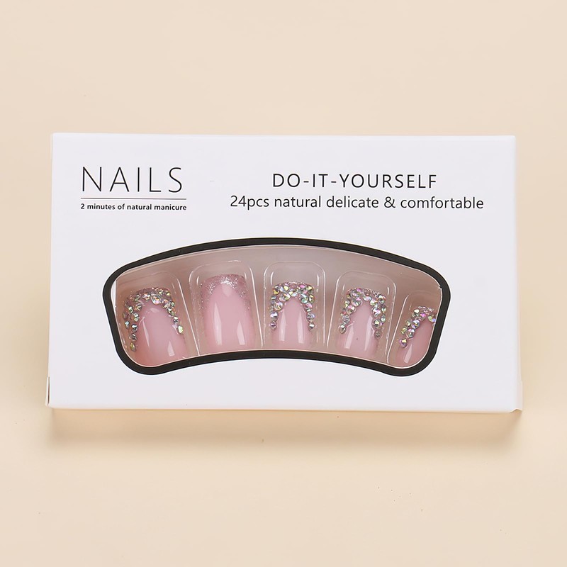- Package Included: 24pcs glossy french tip with rhinestones false nails, jelly glue, a wooden stick. Jelly glue makes the false nails reusable. Please use suitable glue according to different scenes