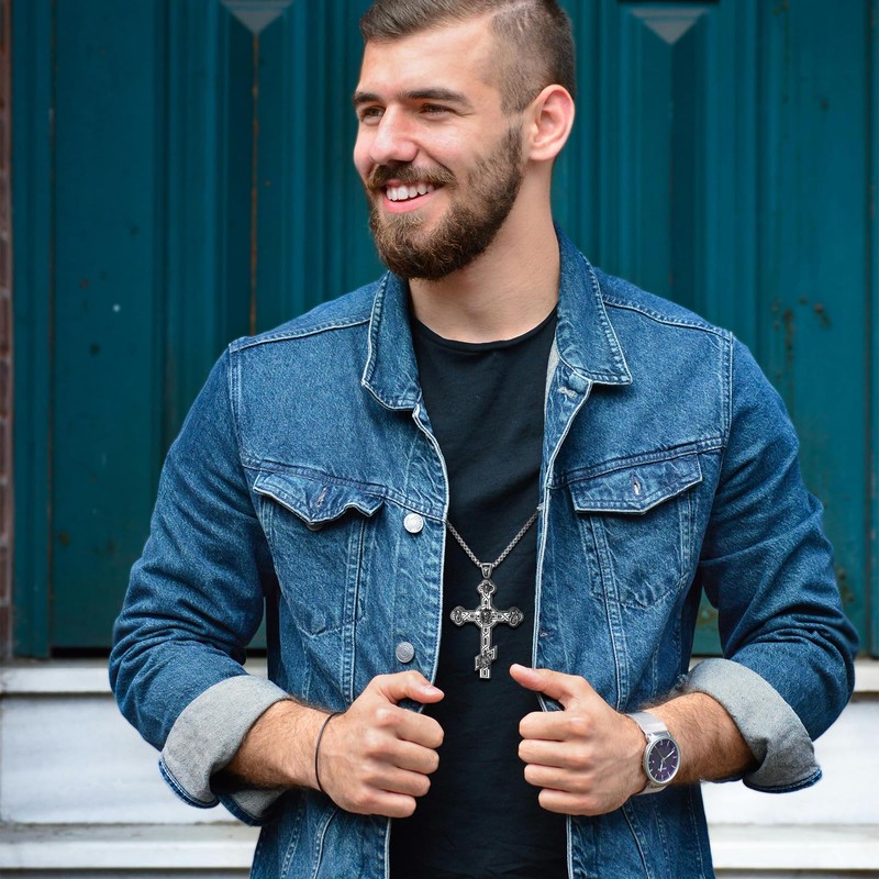 - Classic Large Orthodox Cross Necklace - Perfect Catholic & Christian Jewelry, Unique, Well and Creative Design, Crucifix Necklace. Suitable for daily wear and spiritual occasions. Super Large Cross Pendant.