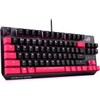 - ASUS ROG Strix Scope TKL Electro Punk Edition Mechanical Gaming Keyboard comes in a stunning black-and-pink cyberpunk theme. It features German-made Cherry MX red switches for precision input with responsive keystrokes for an enhanced gaming performance