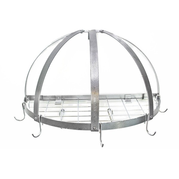 Rogar Half Dome Pot Rack W Grid in Black W Chrome Hooks, White/Chrome