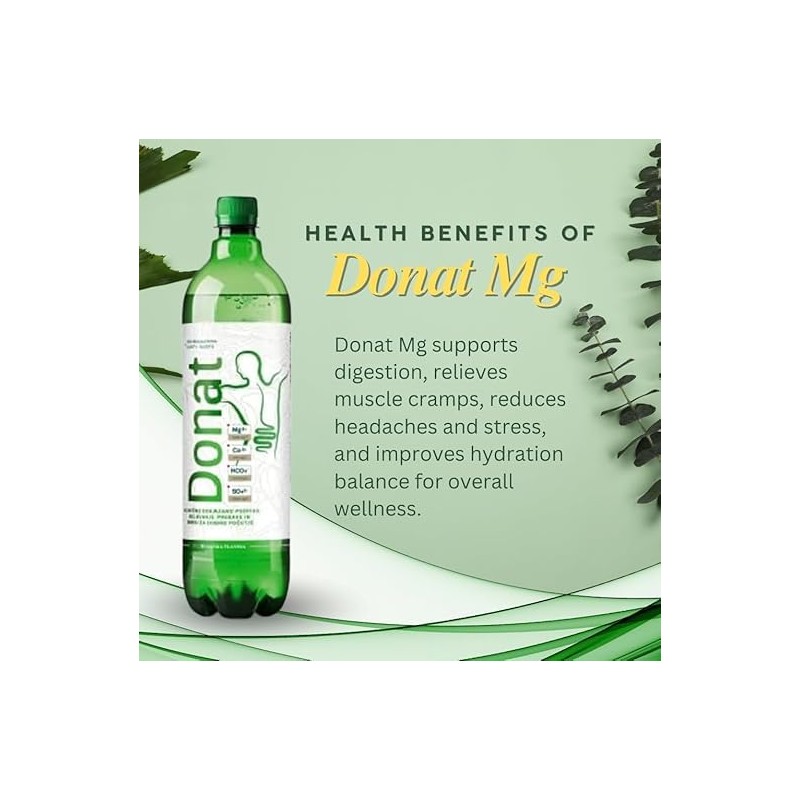 - FOR YOUR HEALTH - Our mineral water not only tastes exceptionally refreshing, but also has many health benefits, such as: Aids digestion (natural intestinal cleansing), muscle relaxation, can help with muscle spasms, headaches, fatigue, etc. Nutrients are essential and from now on you will have enough thanks to Donat Mg mineral water.