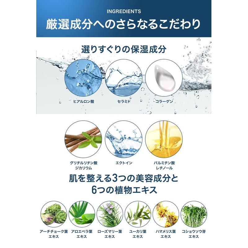 • 8 Free Ingredients / Safe Made in Japan / Petroleum Surfactant / Mineral Oil / Synthetic Fragrance / Synthetic Colors/ Paraben (Preservatives), Ethanol, UV Absorbent, Previously designated ingredients / Made with a thorough selection of ingredients that are good on the skin and are additive-free, hypoallergenic ingredients
