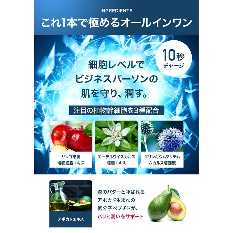 This all-in-one lotion is designed and developed by an international image consultant who is familiar with image management who focuses on skin problems such as low moisture volume and a lot of sebum, and is particularly important to the characteristics of men's skin. As aging care for your skin with a reduced barrier function due to stress and UV rays, and shaving damage caused by fatigue, it can be used not only for daily care, but also for important business occasions and dates.
