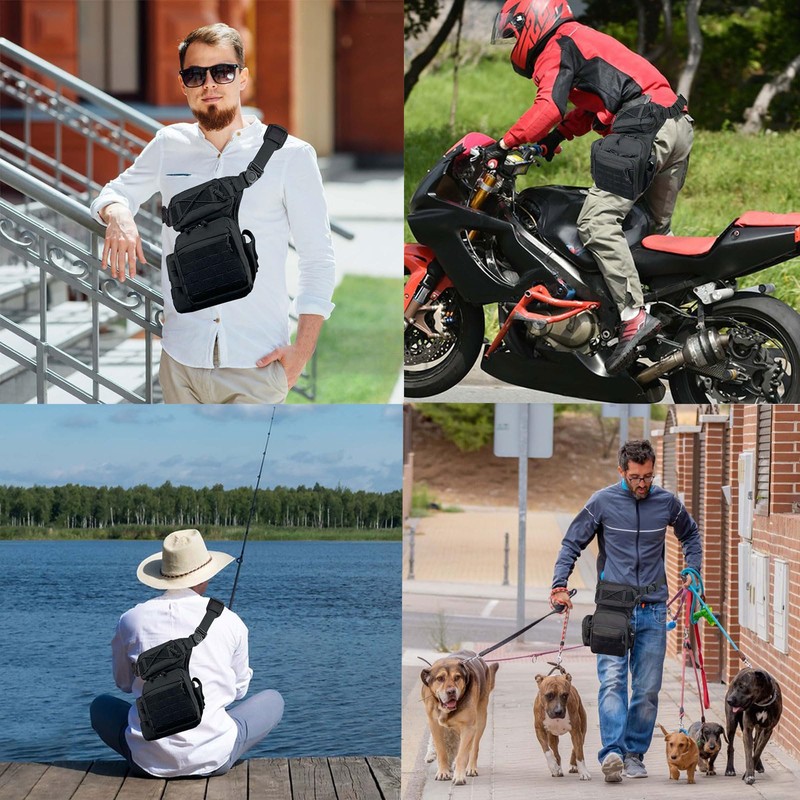 - 【Multiple carrying methods】 It can be used as a leg bag, and the detachable thigh strap allows it to be worn on the left or right leg. At the same time, by removing the thigh strap, it can become a fashionable shoulder bag, crossbody bag or chest bag