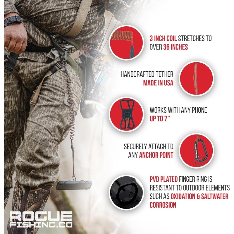 - DROP-PROOF CONFIDENCE - Your phone is your lifeline—don’t risk it. With the Rogue Fishing tether, drops are no longer a concern. Attach it to a lanyard, belt loop, or backpack for instant security. Great for kayaking gear, fishing gear, or rugged day hikes, this tether ensures your device stays put. Ideal for those needing reliable phone accessories while outdoors, traveling, or exploring off-grid.