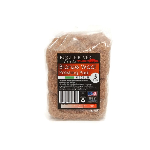 The Rogue River Tools Bronze Wool Pads are made using a high performance bronze alloy shaved to form a high quality metallic wool. Bronze wool pads are great for polishing all types of metallic and wood surfaces and their associated finishes. Make sure to only polish materials that are of the same metallic hardness or higher (polishing softer metals may scratch or scour them).