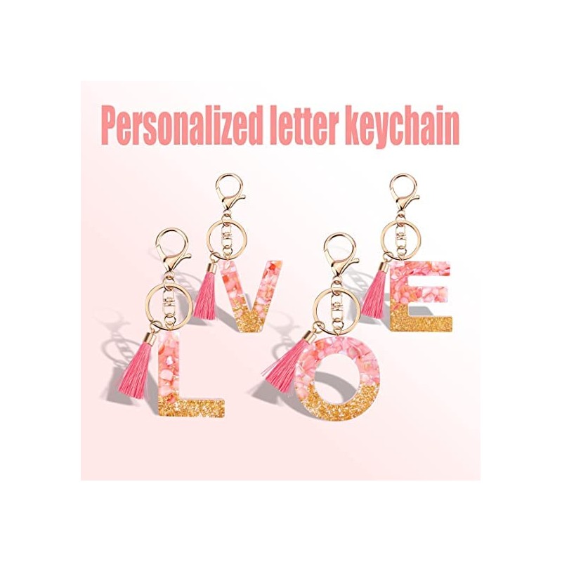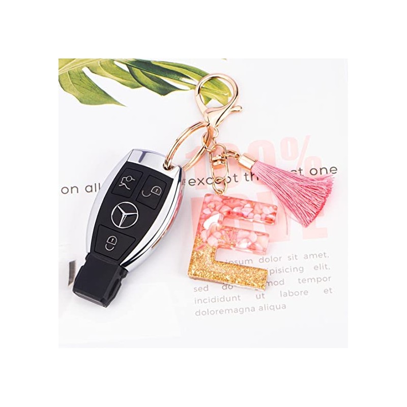 Rohans Pink and Gold Resin Alphabet Initial Letter Keychain, Bag Charm, Key Ring with Lobster Clasp (E)