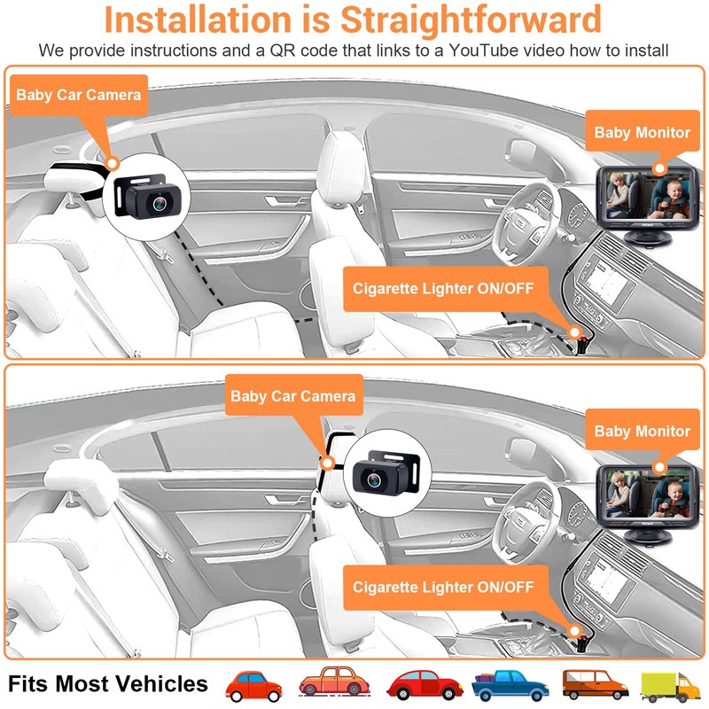 Special Feature:HD Resolution, HD 1080P Video: Real-time monitoring with sharp clarity. Automatic Night Vision: Clear images even in low light,150° Wide-Angle Lens: Covers the entire backseat for multiple car seats. Anti-Glare Display: Brightness and contrast adjustments for any lighting, Night Vision, Adjustable,150° Wide-Angle Lens: Covers the entire backseat for multiple car seats. Anti-Glare Display: Brightness and contrast adjustments for any lighting, Brightness Control,A parent confidently driving with the monitor visible. A baby peacefully sleeping, shown clearly on the monitor.