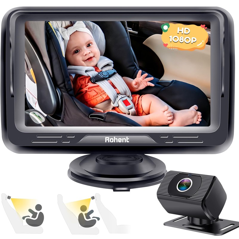 Rohent Baby Car Camera HD 1080P - Rear-Facing Infant Monitor with Night Vision Car Camera for Baby 150° Wide-Angle Lens Anti-Glare Screen Easy Install 360° Adjustable Display