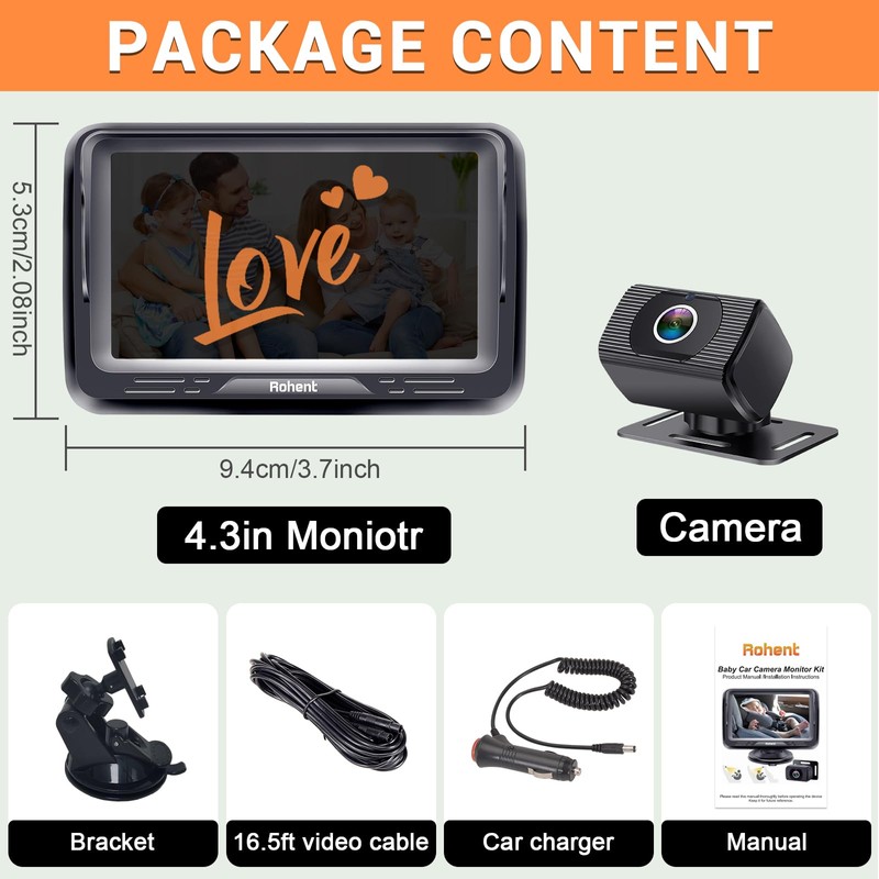 Special Feature:HD Resolution, HD 1080P Video: Real-time monitoring with sharp clarity. Automatic Night Vision: Clear images even in low light,150° Wide-Angle Lens: Covers the entire backseat for multiple car seats. Anti-Glare Display: Brightness and contrast adjustments for any lighting, Night Vision, Adjustable,150° Wide-Angle Lens: Covers the entire backseat for multiple car seats. Anti-Glare Display: Brightness and contrast adjustments for any lighting, Brightness Control,A parent confidently driving with the monitor visible. A baby peacefully sleeping, shown clearly on the monitor.