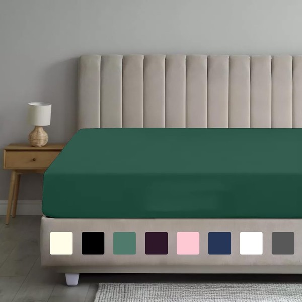 Rohi Double Fitted Sheet 100% Microfibre – 16'' (40cm) Extra Deep Fitted Sheet with All Around Elastic – Ultra Soft, Hypoallergenic & Durable Bed Sheet – Bottom Sheet (Teal – 137 x 190cm)