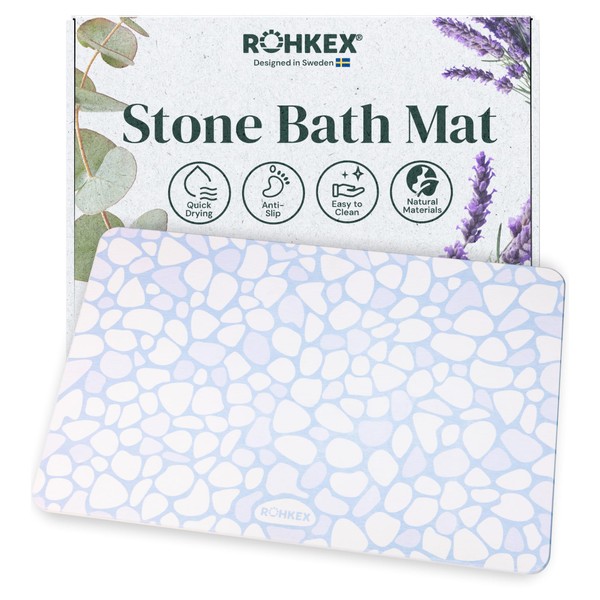 ROHKEX Stone Bath Mat Diatomaceous Earth - Super Absorbent, Non-Slip, Quick Dry, Easy to Clean, Durable Bathroom Shower Floor Mat, Soft-Touch Surface Natural, 24 x 15 (Grey - White)