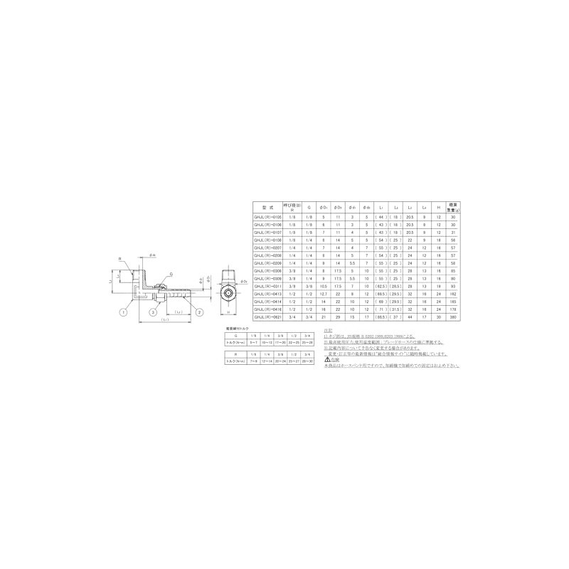 【RoHS】黄銅製L型ホースジョイント GHJL(R)-0209 1/4x16