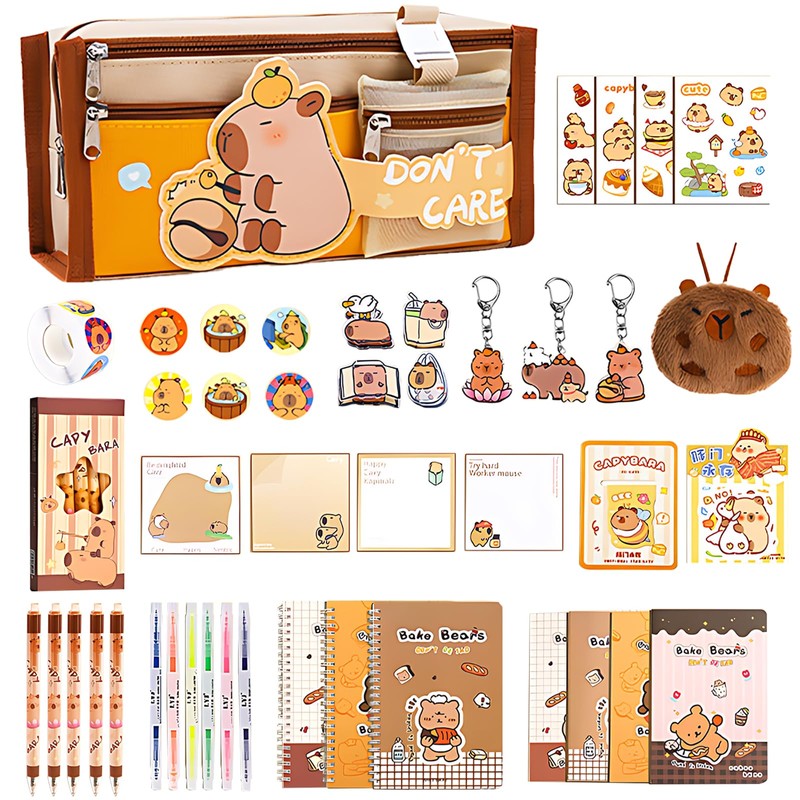 - Versatile use: this Capybara stationery set is ideal for students, artists and professionals. Whether you are attending classes, drawing or working, this Capybara pencil case set helps you stay organised and manage all your important things.