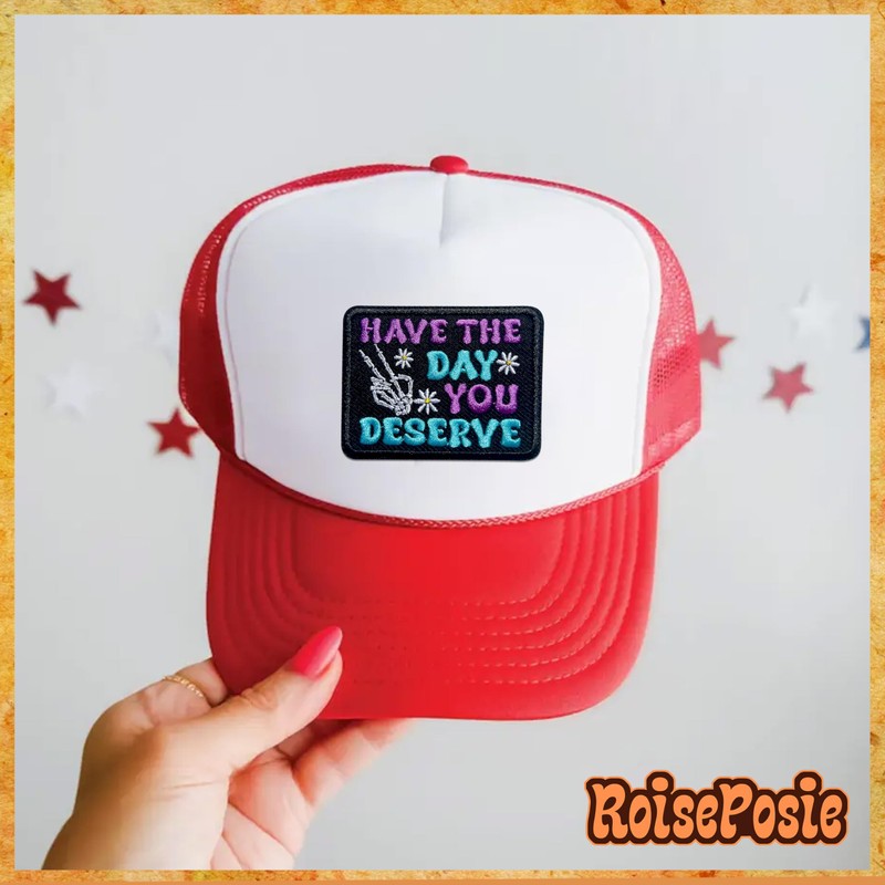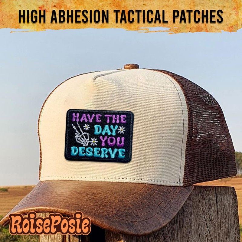 ROISEPOSIE Have The Day You Deserve Patch, 3 Inches Iron On/Sew On Embroidered Applique Fabric Hand Skeleton Patches for Clothes Backpacks Hat Jeans, Funny Sarcastic Embroidery Patches for Adults