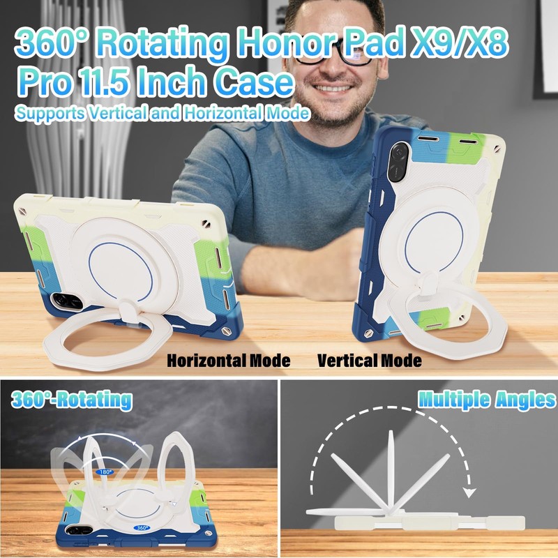 - ★Portable Shoulder Strap & Rotating Stand: Provide the securest protection and more convenience when you play or work with Honor Pad X9/X8 Pro. Hang it anywhere for your better entertainment, make your hands free. 360° rotating kickstand provides multi-angle viewing, with shoulder strap, easier to use your Pad X9 11.5 in your outdoor travelling, working, gaming with kids.