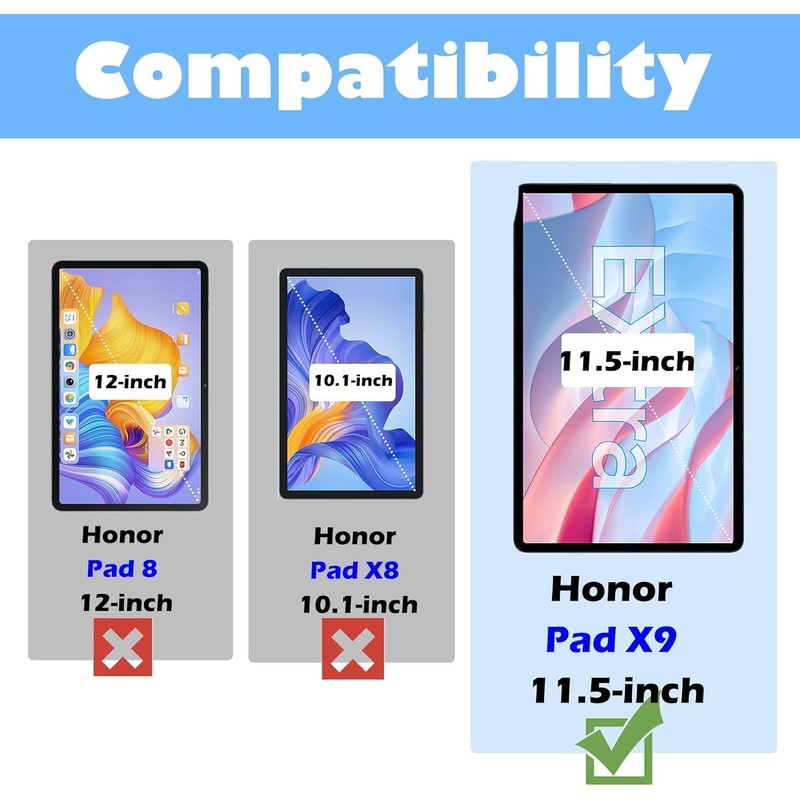 - ★No Screen Protector: Designed for Honor Pad X9 11.5 inch、Honor Pad X8 Pro 11.5 inch⚠️Notice: Please identify your iPad model before purchasing.