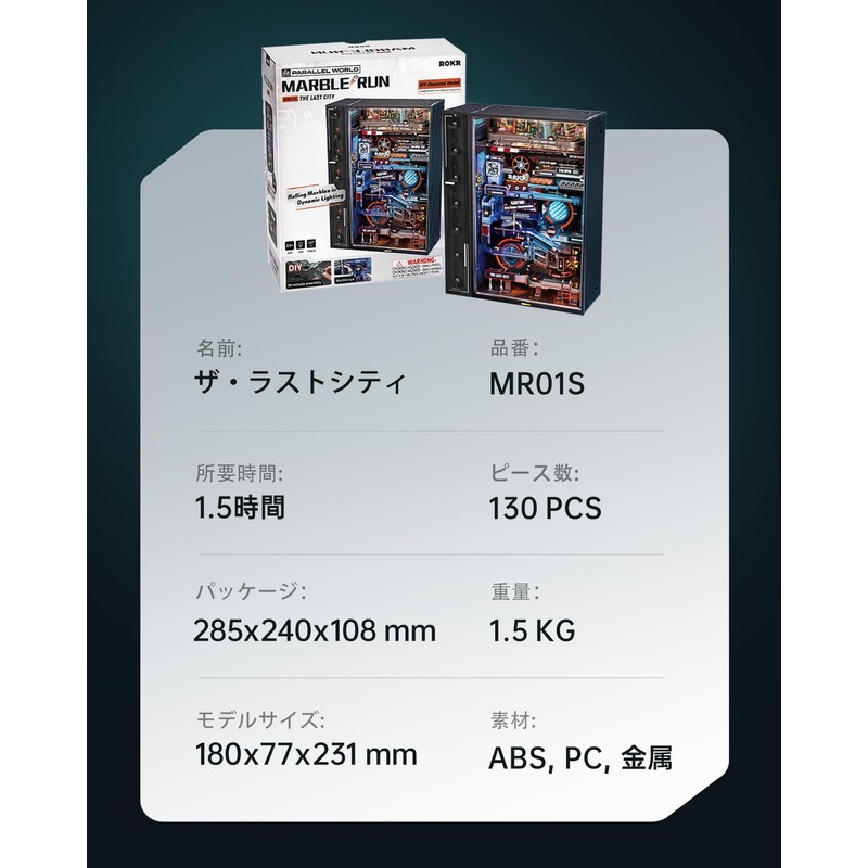 - [ROKR The Last City] A cyberpunk-inspired DIY miniature model building kit with a fully automated marble lift. Connect via type-C, tap to start, and enjoy two modes: marble running or lighting display.