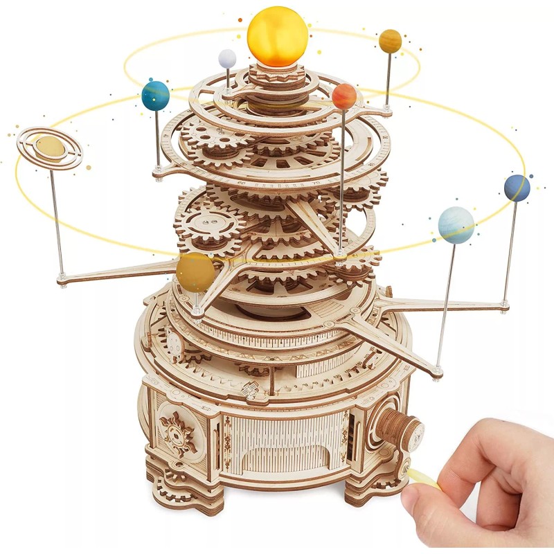 ROKR Huge Orrery is a solar system-planetary orbits model. The 3D puzzle demonstrates the relative positions of planets, and simulate their orbits in space. To assemble the gear-drive machines, you need to be very concentrated and patient. You will surprise everyone withOnce completed, just crank the handle to see the sun glowing and planets orbiting around it. the grand result.
