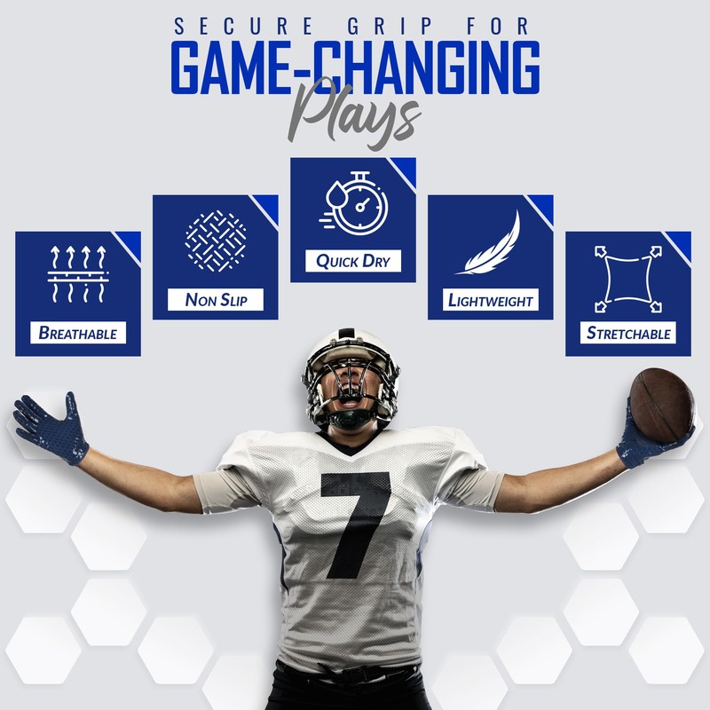 - The perfect gift for any football enthusiast. These gloves boast a versatile design tailored to complement various playing styles and positions. Engineered with a durable, non-slip grip system, our youth football gloves guarantee a firm hold on the ball, minimizing the risk of dropped passes and fumbles. On the field, a sleek and functional pair of gloves adds a new level of confidence and flair to every play.