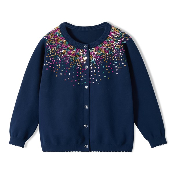 Rolanko Girls' Bolero Cardigans, Long Sleeve Cotton Basic School Clothing, Crew Neck Pullover Cardigan, Sequins Navy