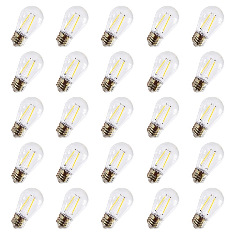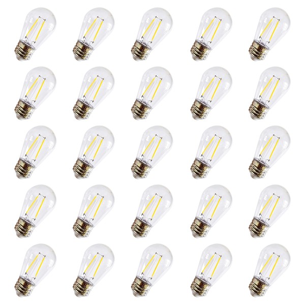 Rolay S14 Clear String Light Bulbs, 2W Plastic LED Replacement Bulbs for Outdoor Patio String Lights with E26 Base, Pack of 25