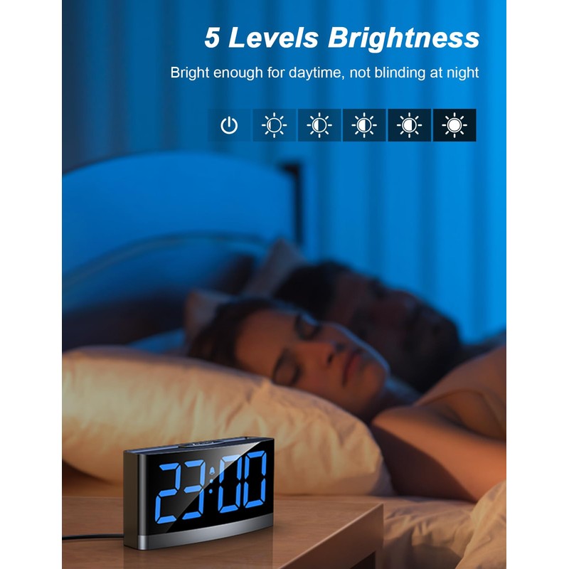 The elegant curves of the digital alarm clocks bedside face, combined with eye-catching blue LED numbers, can create a striking appearance. The screen brightness is adjustable in 5 levels, allowing you to choose a comfortable brightness and capture the rhythm of time itself.