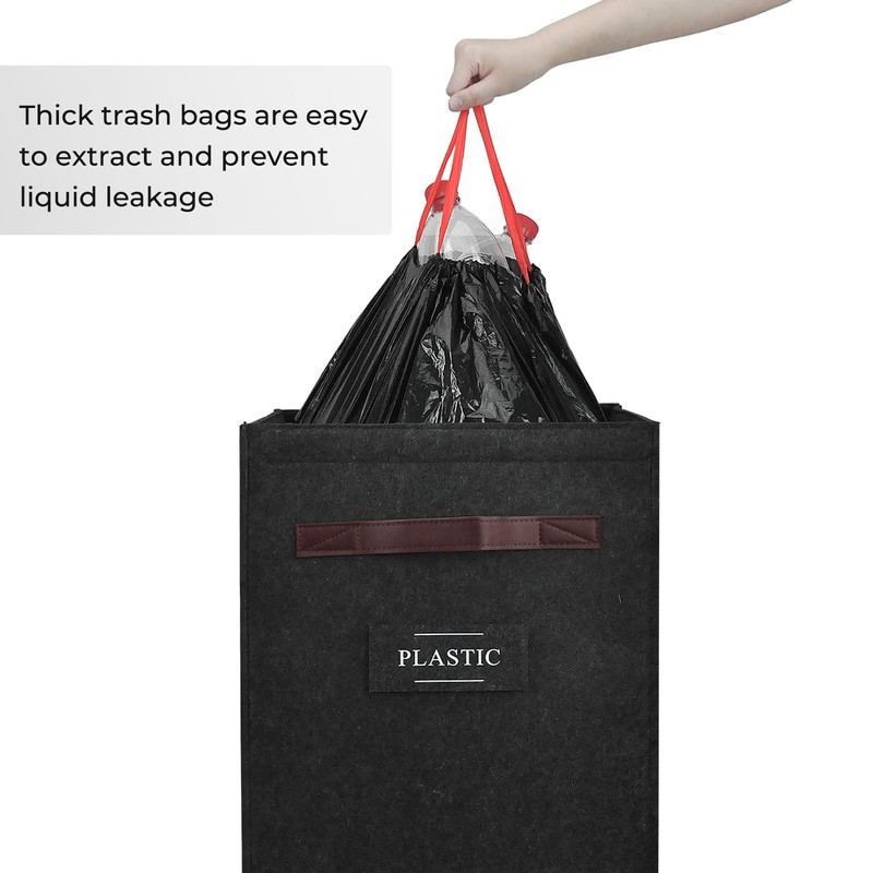 - Premium Material: The recycling bin is made of thickened felt material, supported by solid bamboo strips on the top, the bottom is designed with stitching reinforcement, and a stiffened soleplate is attached, many details are designed to make the recycling organizer to stand securely without tipping over. The recycle bins for kitchen is perfect for indoor use, lightweight construction and collapsible design make the recycle bin easy to move and store