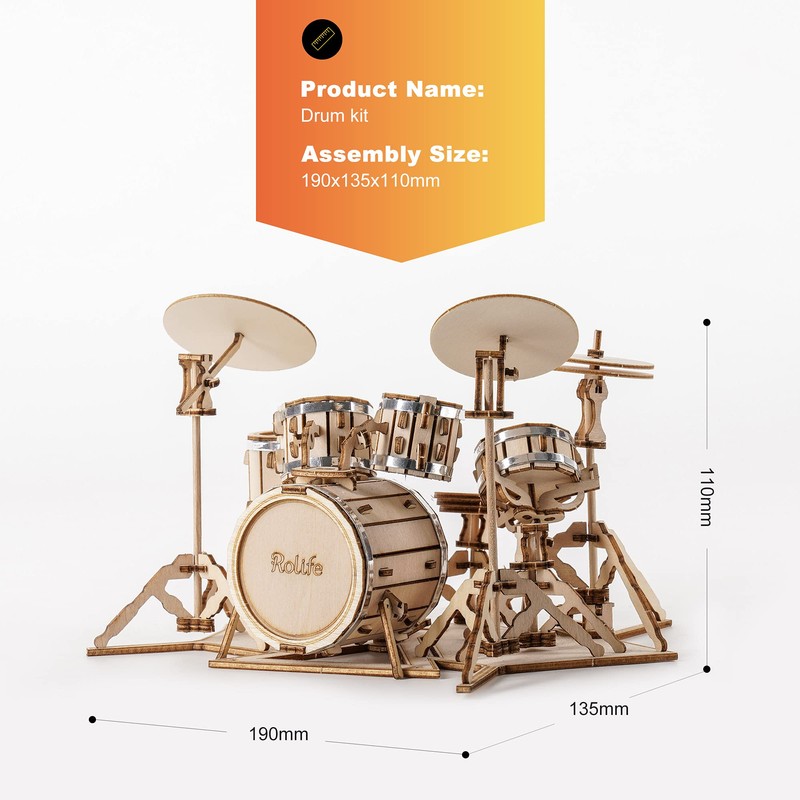 Rolife 3D Wooden Puzzles Drum kit Craft Model Kits for Adults to Build Musical Instruments Birthday Gift for Family and Friends 246 Pieces, Drum kit