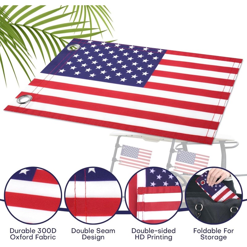 - Versatile Use: Perfect for golf carts, boats, porches, scooters, and more. Show your American pride anywhere!