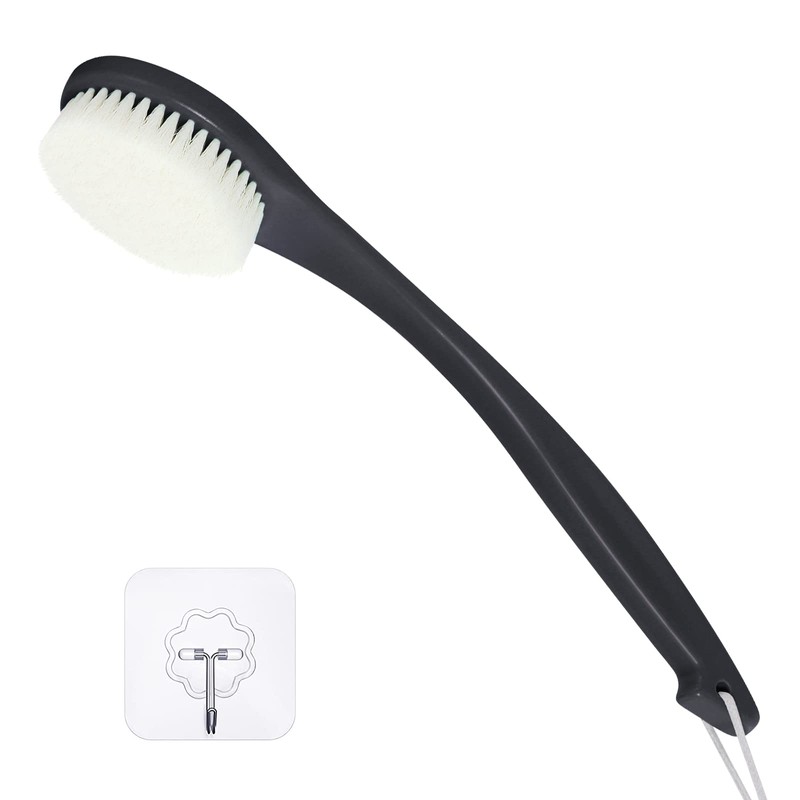 ROLIZOE Back Brush Long Handle for Shower, Soft Bristle Back Scrubber for Shower, Ergonomics Curved Long Handle Bath Brush Exfoliating Body Scrubber with Hook and Lanyard-Black