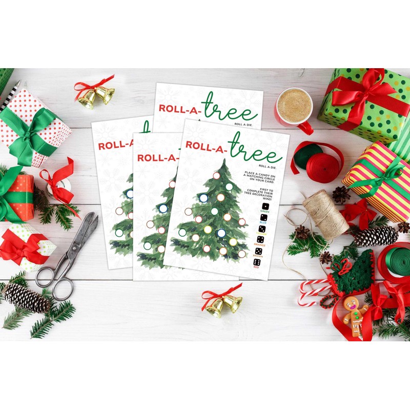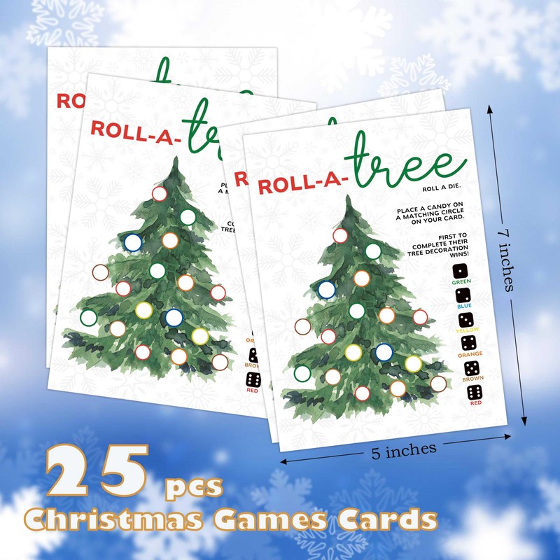 Roll a Christmas Tree Game Card, Dice Rolling Game, Christmas Candy Game, Christmas Games for Family Party, Ice Breaker Games, Party Games for Teens, 25 Game Cards, 1