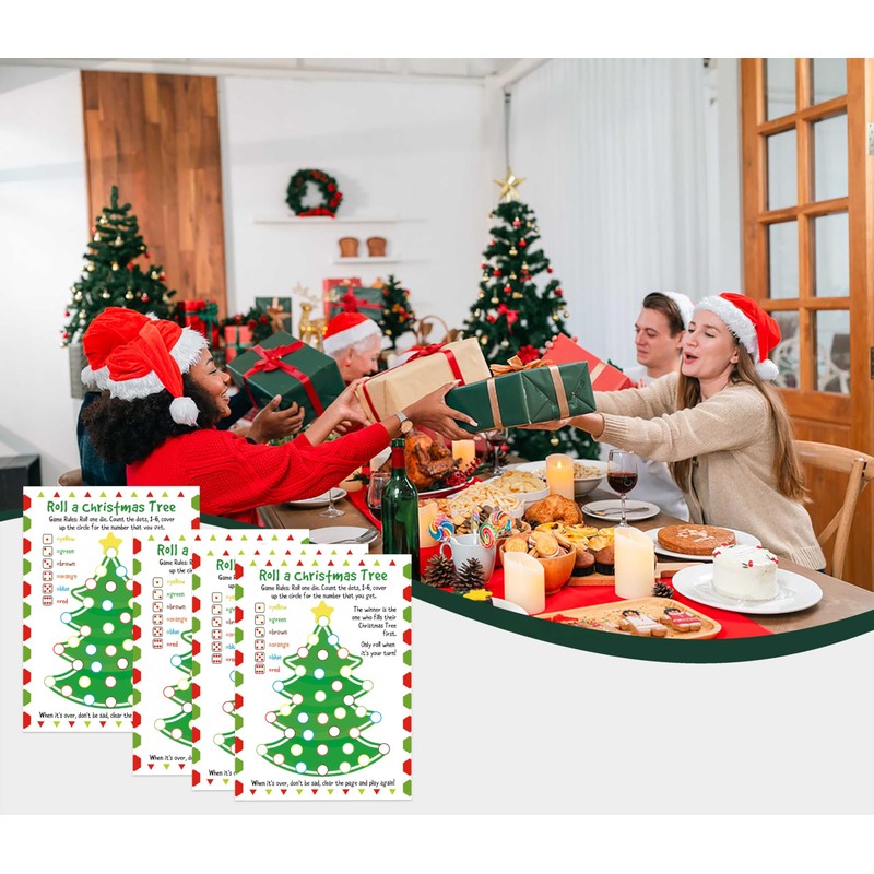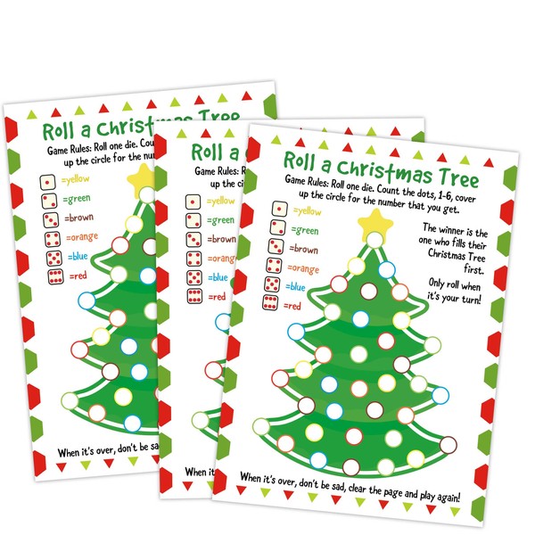 - 【Challenge and Fun】Rolling the dice and place a candy on the matching color as directed by the dice, the first person to fill their tree wins! This Xmas game cards can help make your Christmas party extra fun this year.