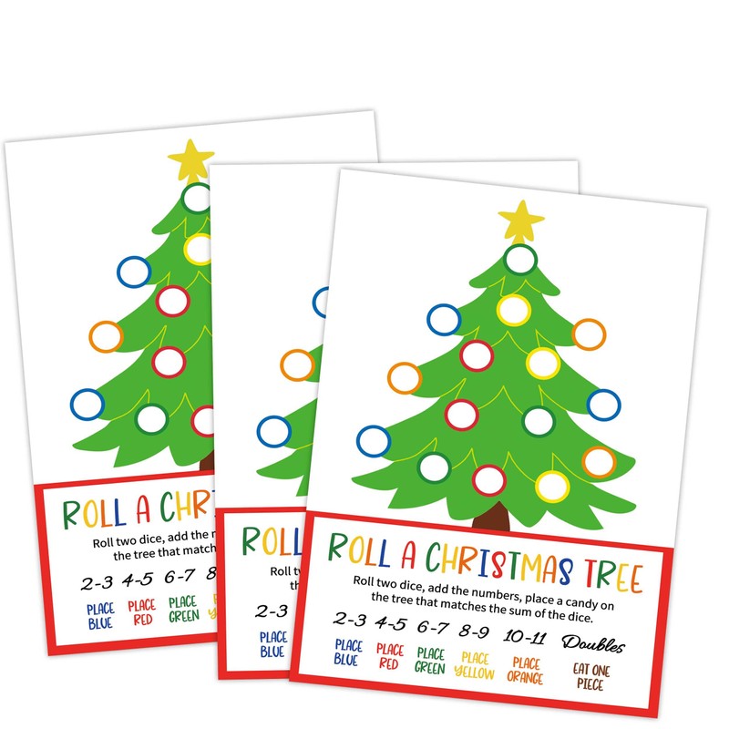 - 【Challenge and Fun】Rolling the dice and place a candy on the matching color as directed by the dice, the first person to fill their tree wins! This Xmas game cards can help make your Christmas party extra fun this year.