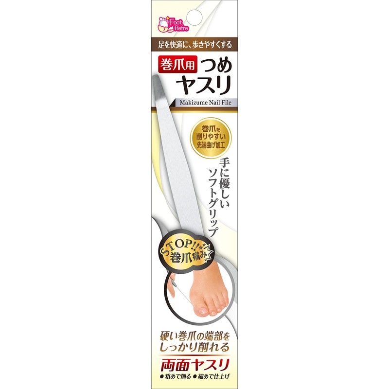 A nail file with a bent tip that makes it easy to sharpen painful nails and hard toes. Double-sided file with coarse (inside) suitable for shaping and thin (outside) suitable for finishing. The tip is bent inward about 20 degrees so you can sharpen it quickly and neatly along the curve of your nail. High carbon stainless steel is hard and rust-resistant and durable.